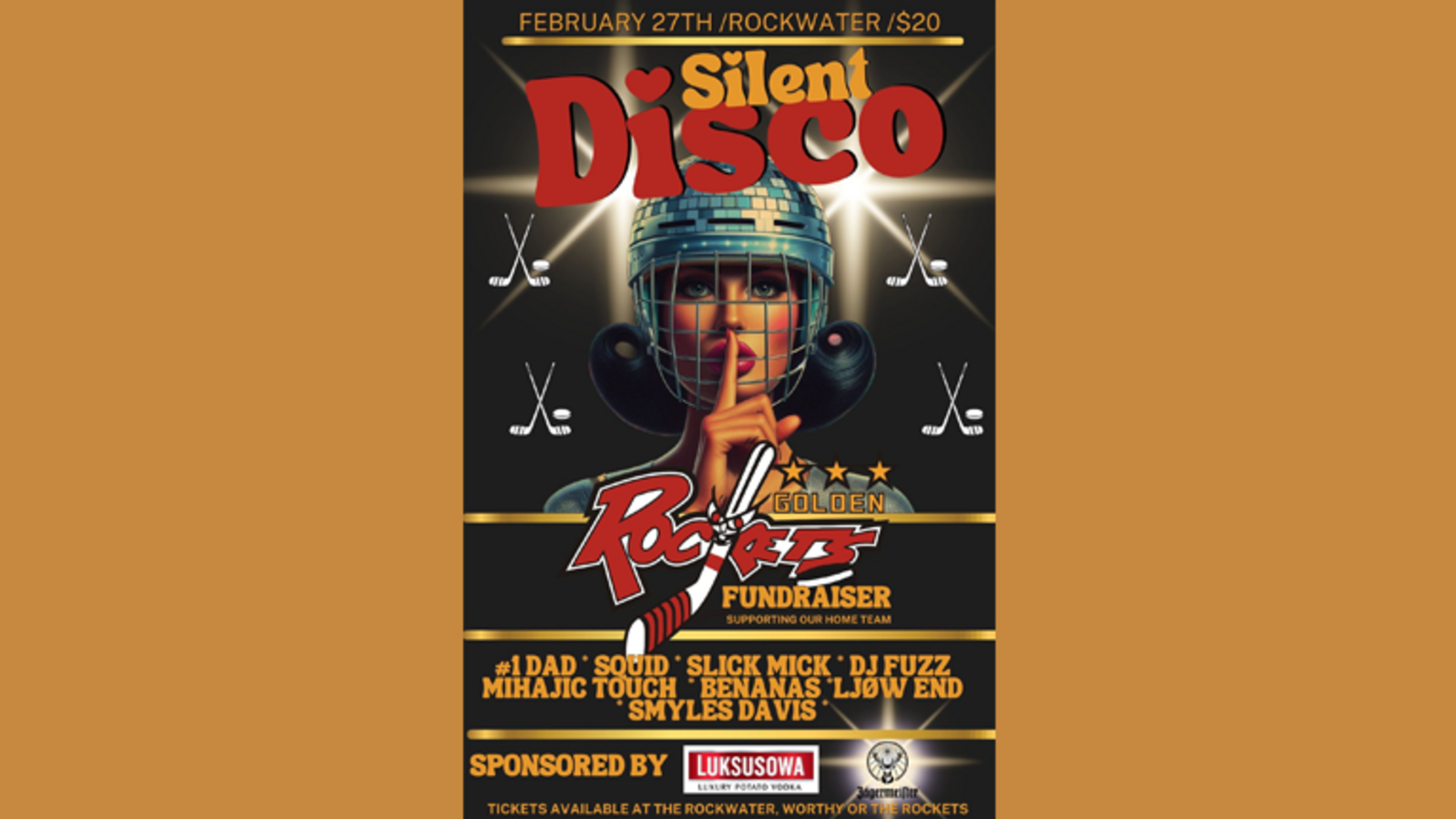 $25 at the door . We have 8 DJs playing all night, sponsored by luksusowa vodka & jagermeister so we will have cheap drinks happening . The goal for the evening is to raise as much money as possible for the golden rockets !